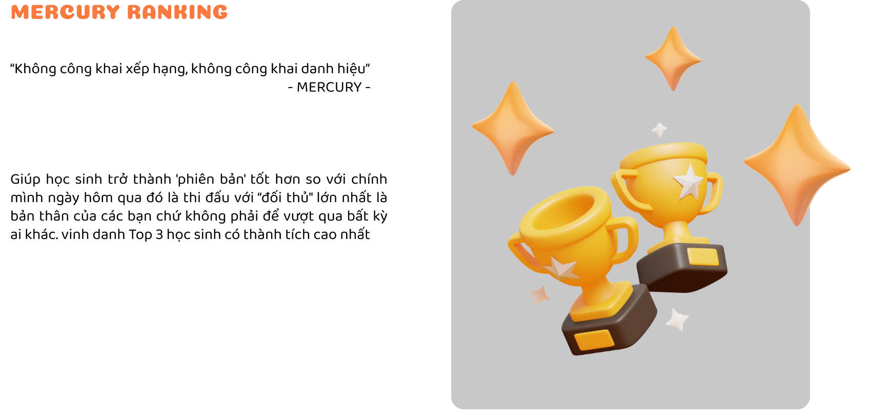 Việc cạnh tranh cũng không có gì là sai cả. Nếu các học sinh khác cũng đang phấn đấu vươn lên vị trí dẫn đầu trên MERCURY RANKING, hãy lấy đó làm động lực cho bản thân.