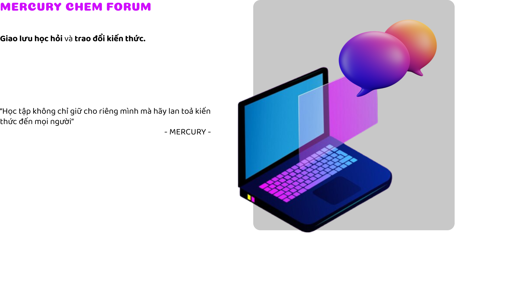 Tham gia vào MERCURY CHEM FORUM cùng trao đổi phương pháp học tập sẽ là phương pháp học hiệu quả cho các bạn học sinh. Tại đây sẽ được mở ra chuỗi kiến thức dài vô tận, được giải đáp những bài tập khó, trao đổi những phương pháp học hiệu quả…